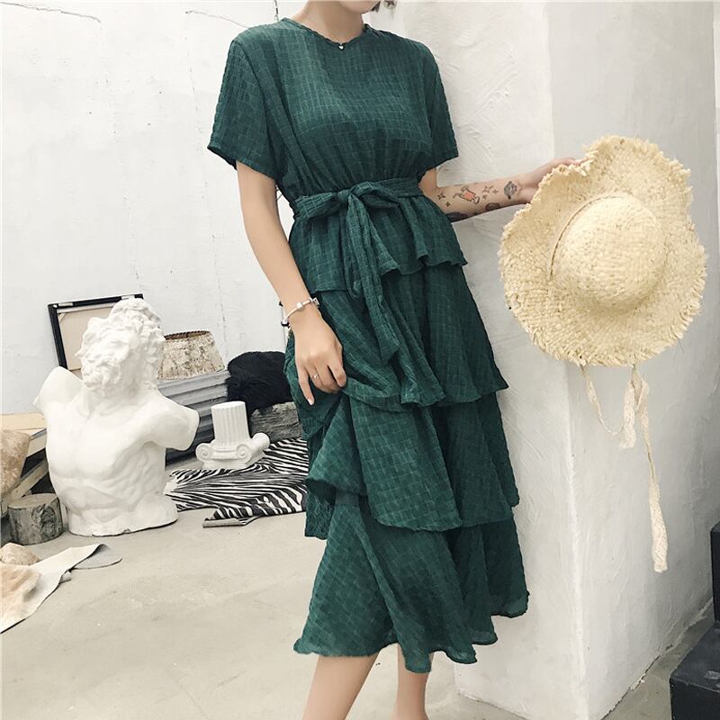 サマースカート スタンダードウェストロングドレス レトロ 夏物 左左右右2471094