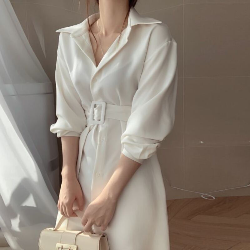 スプリングロングシャツ ドレス ベルト エレガント 春物 ハーネス ICC女装9433644