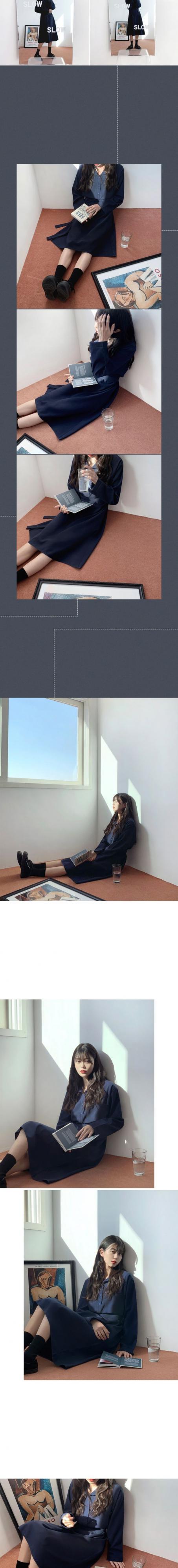 オータムウィンタードレス ワンピース ルーズカラーレースニットスカート 秋物 冬物 左左右右8219537