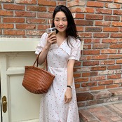 スタンダードスリーブスカート フローラルウェストロングドレス レトロ 花柄 フラワーデザイン 左左右右4313971