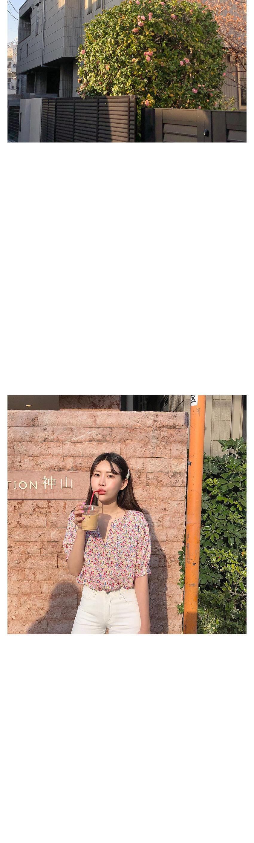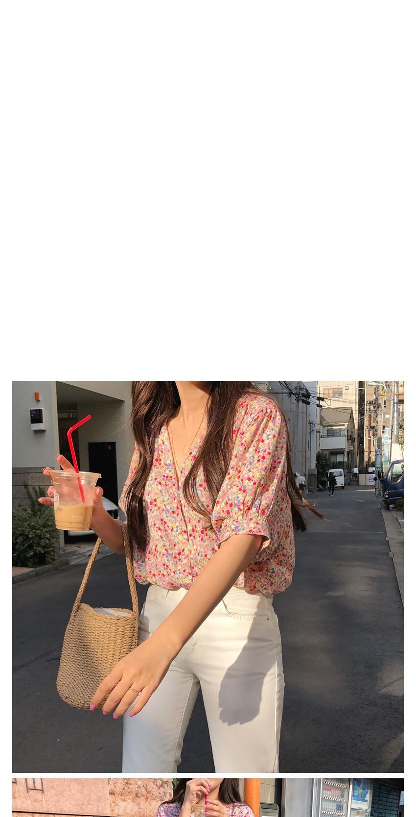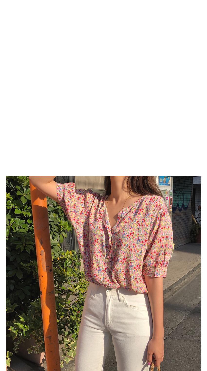 サマースタンダードシャツ トップス フローラルVネック レトロ 夏物 花柄 左左右右1339453