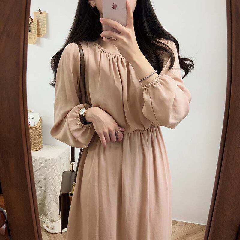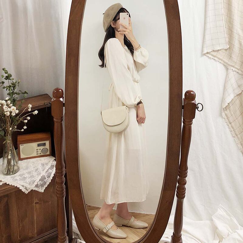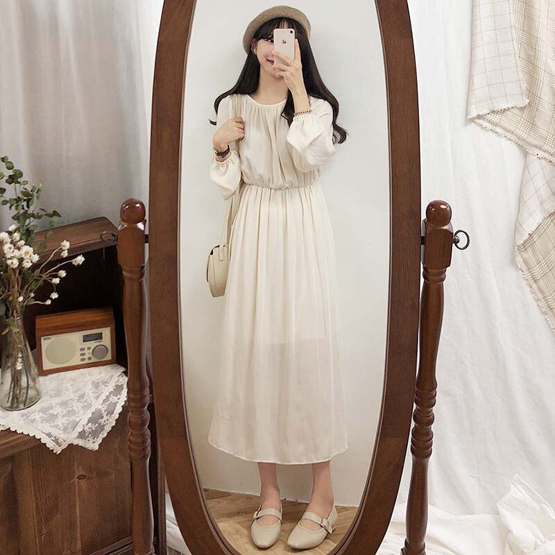 スプリングオータムドレス スカート スタンダードウェスト薄手ロング レトロ 大人ガーリー スウィート キュート カジュアル 春物 秋物 フラワーデザイン 左左右右5251462