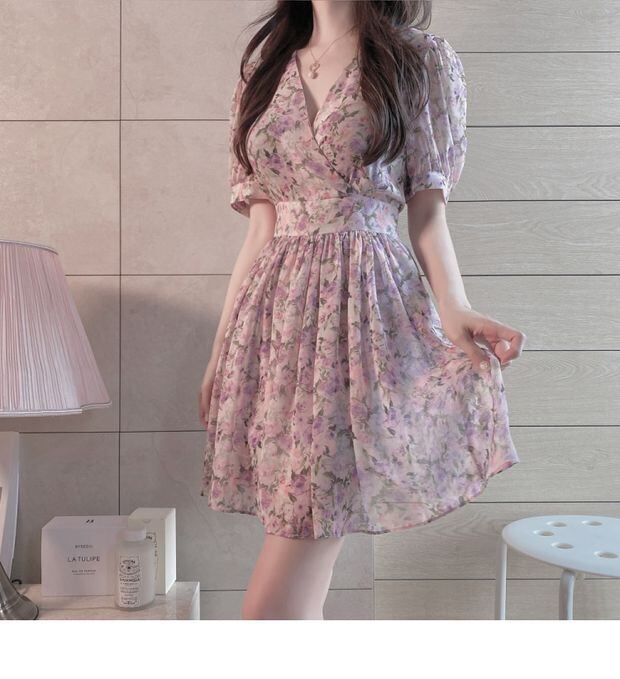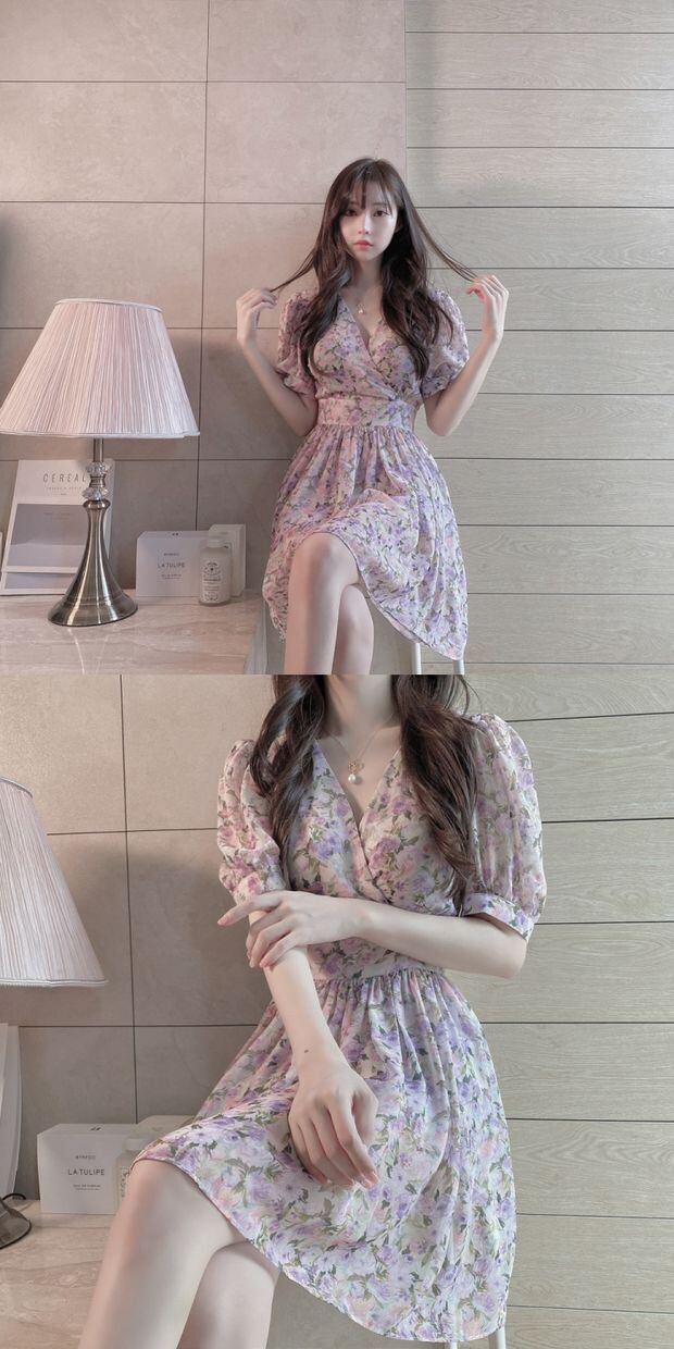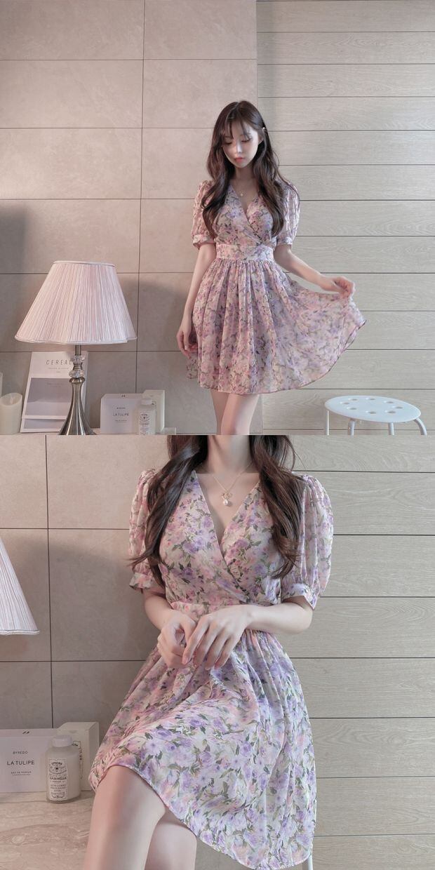 サマースカート ウェストシフォンフローラルドレス 大人ガーリー スウィート キュート カジュアル 夏物 花柄 左左右右1650268