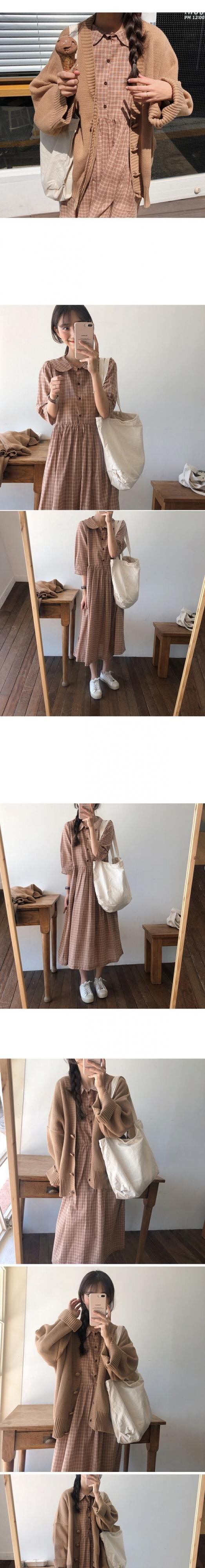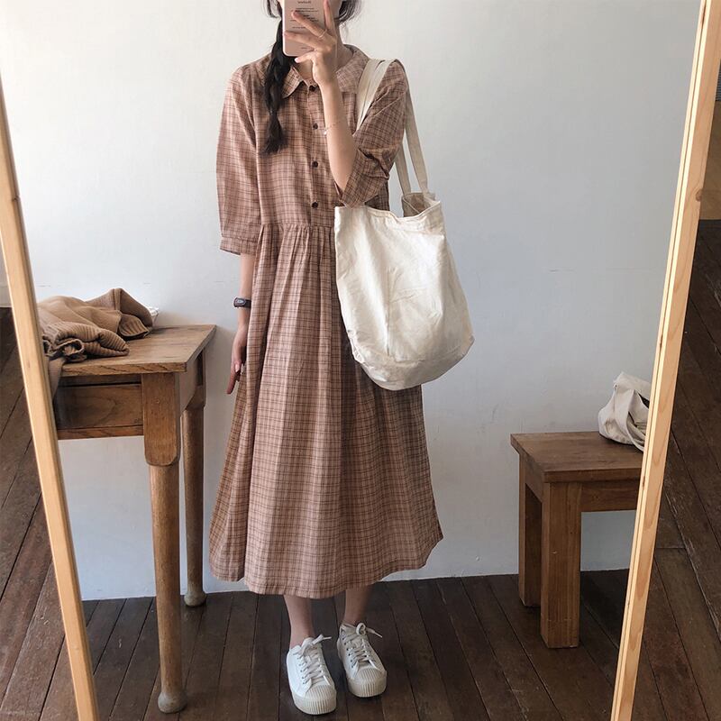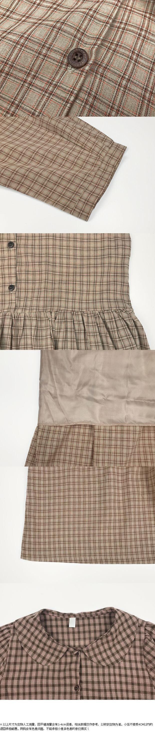 スプリングスリーブスタンダードスタイルスカート ロング格子柄ドレス レトロ 大人ガーリー スウィート キュート カジュアル 春物 フラワーデザイン 左左右右9941931