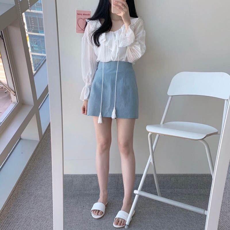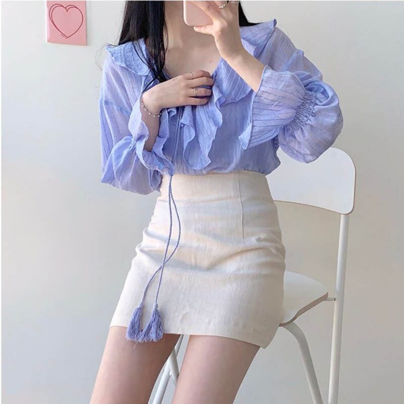 色:ホワイトトップ,ブルートップ,ブルースカートSコード,青いスカートMコード,アプリコットスカートSサイズ,アプリコットスカートM