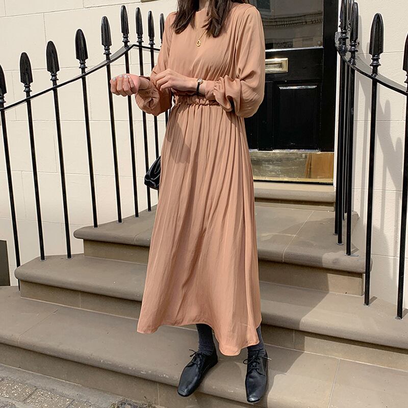 スプリングオータムスタンダードスカート ソリッド カラースタイルロングドレス レトロ 大人ガーリー スウィート キュート カジュアル 春物 秋物 ソリッドカラー 左左右右4129283