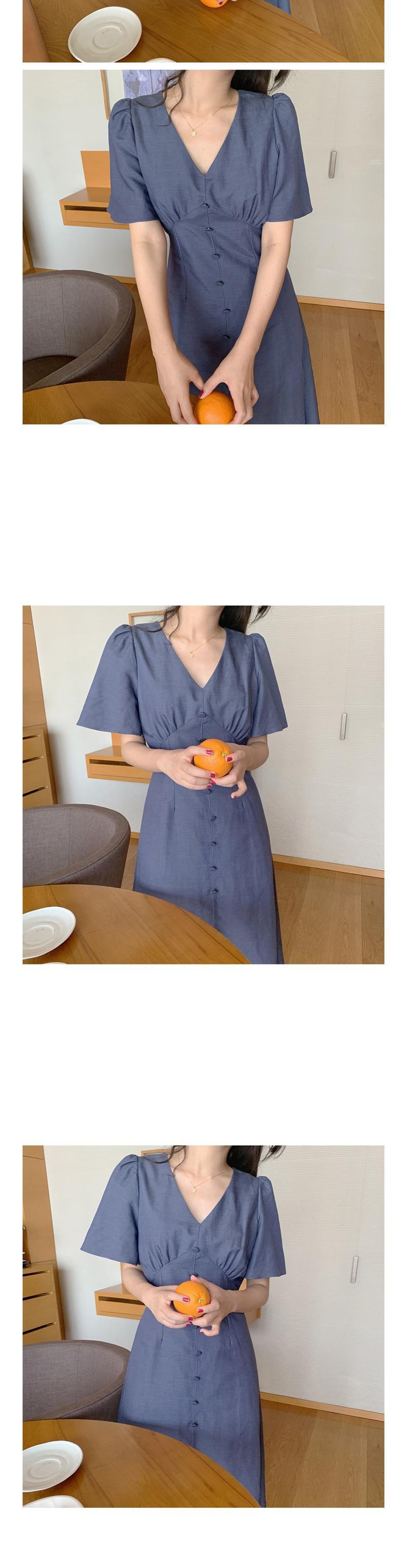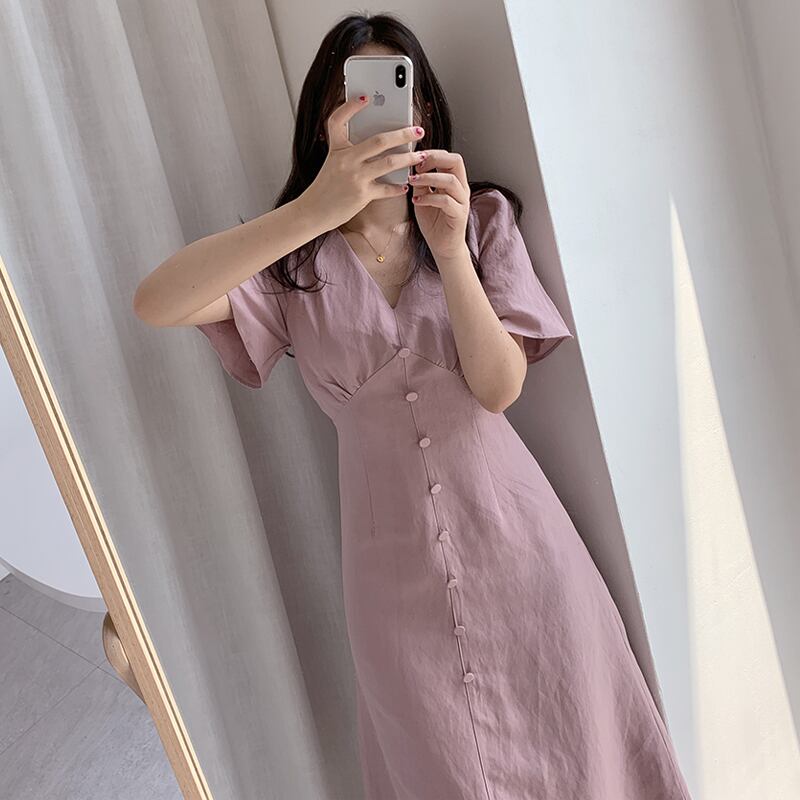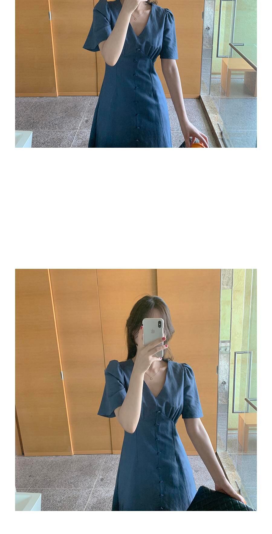 サマースタンダードスカート ハイウェストウェストスリーブVネックロングドレス レトロ 夏物 フラワーデザイン 左左右右4298426