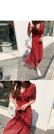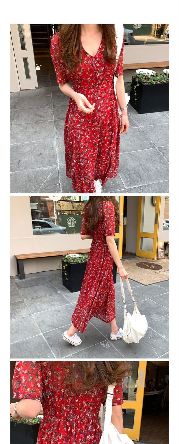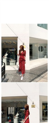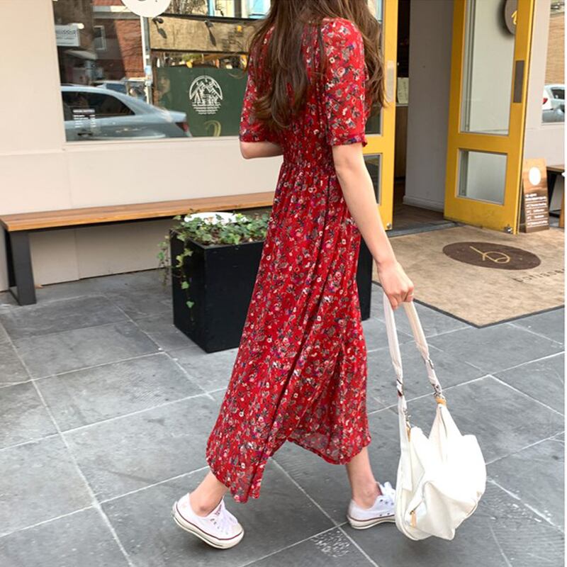 サマースタンダードスカート ロングシフォンフローラルドレス レトロ 夏物 花柄 フラワーデザイン 左左右右7893653