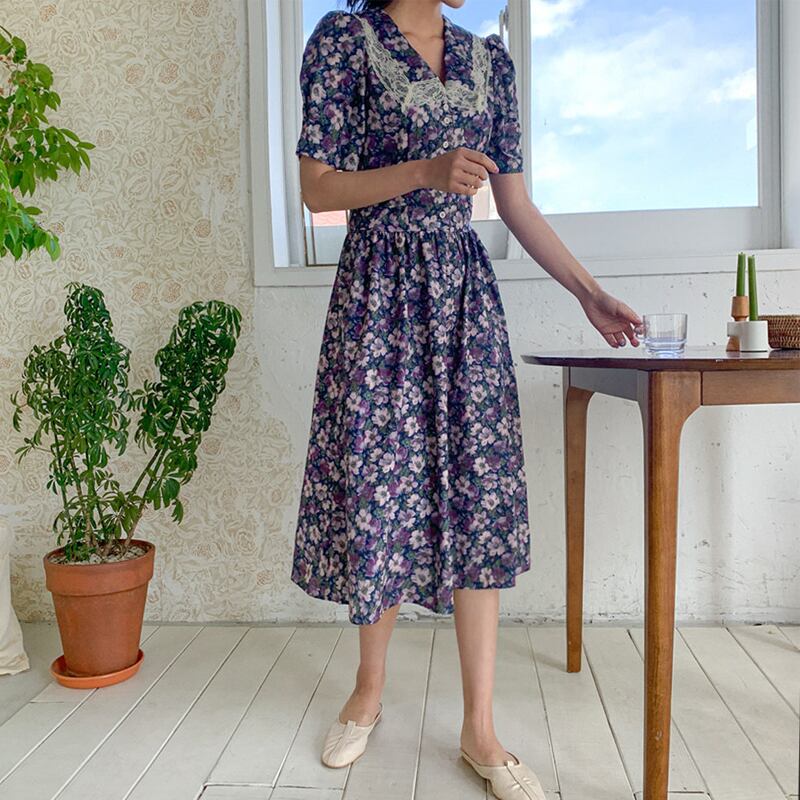 サマースカート レーススタイルスタンダードフローラルドレス レトロ 夏物 花柄 フラワーデザイン 左左右右3145340