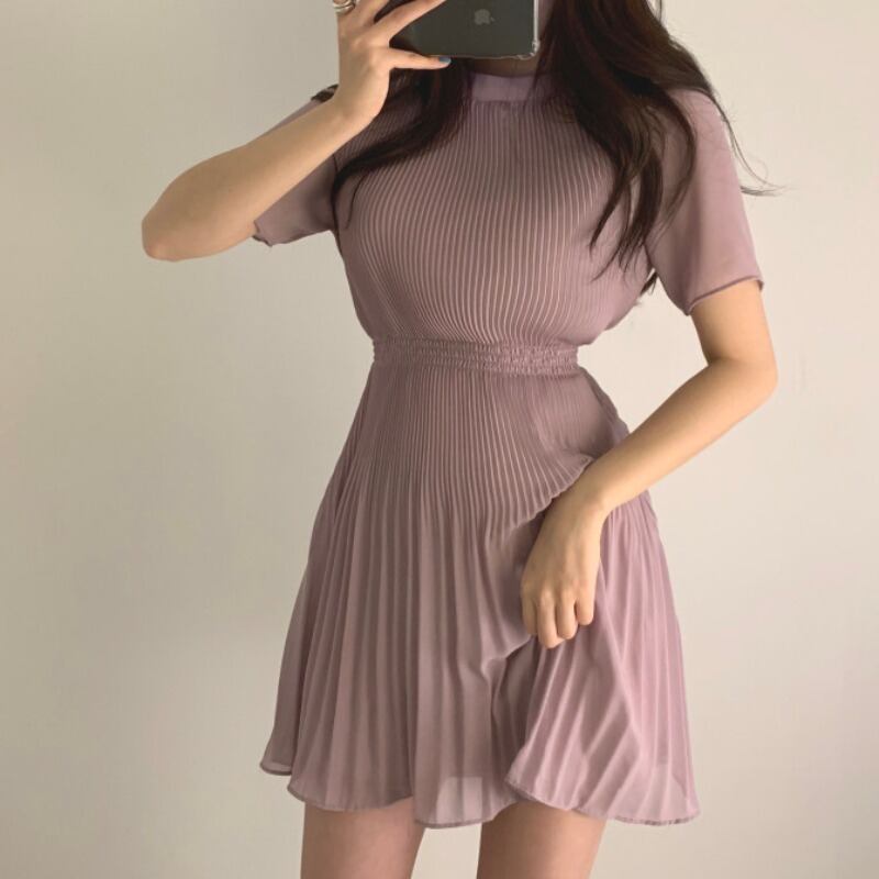 サマースリムウェストシフォンプリーツドレス 夏物 フラワーデザイン ICC_レディース2394799