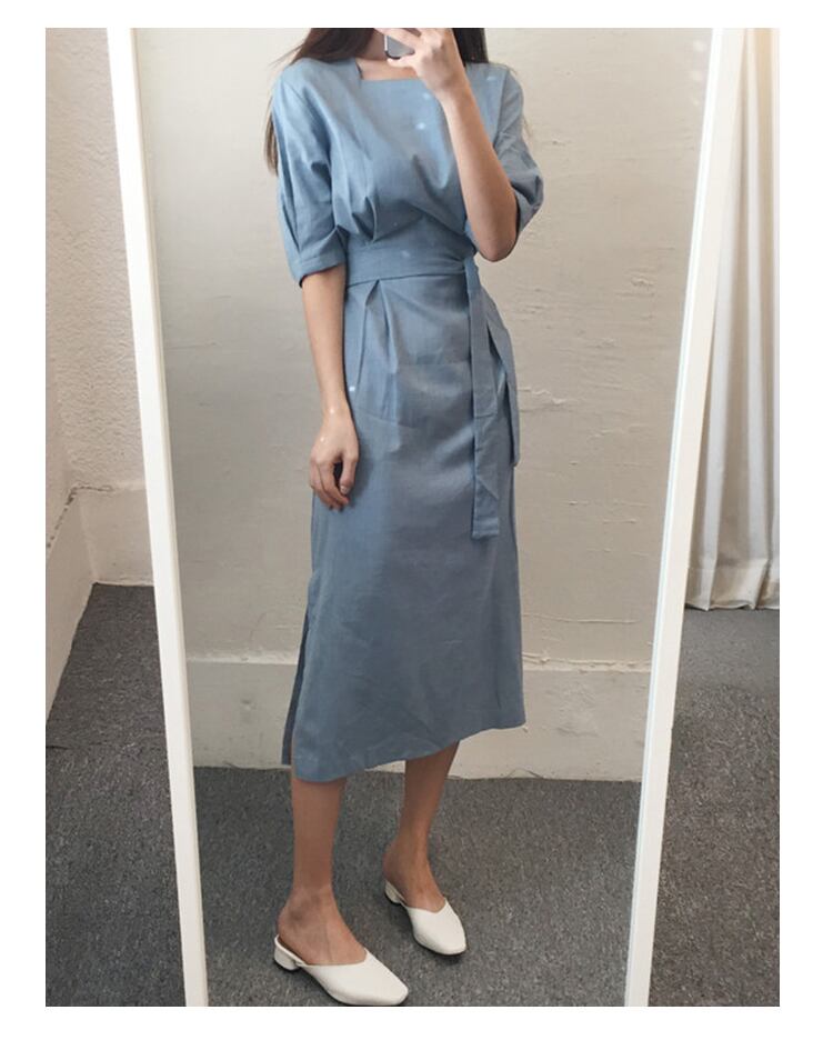 サマースタンダードシフォンロングスリムドレス レトロ 夏物 スカート 左左右右3838909