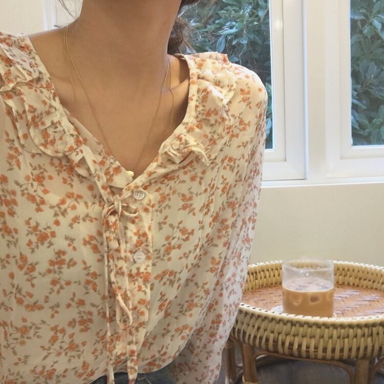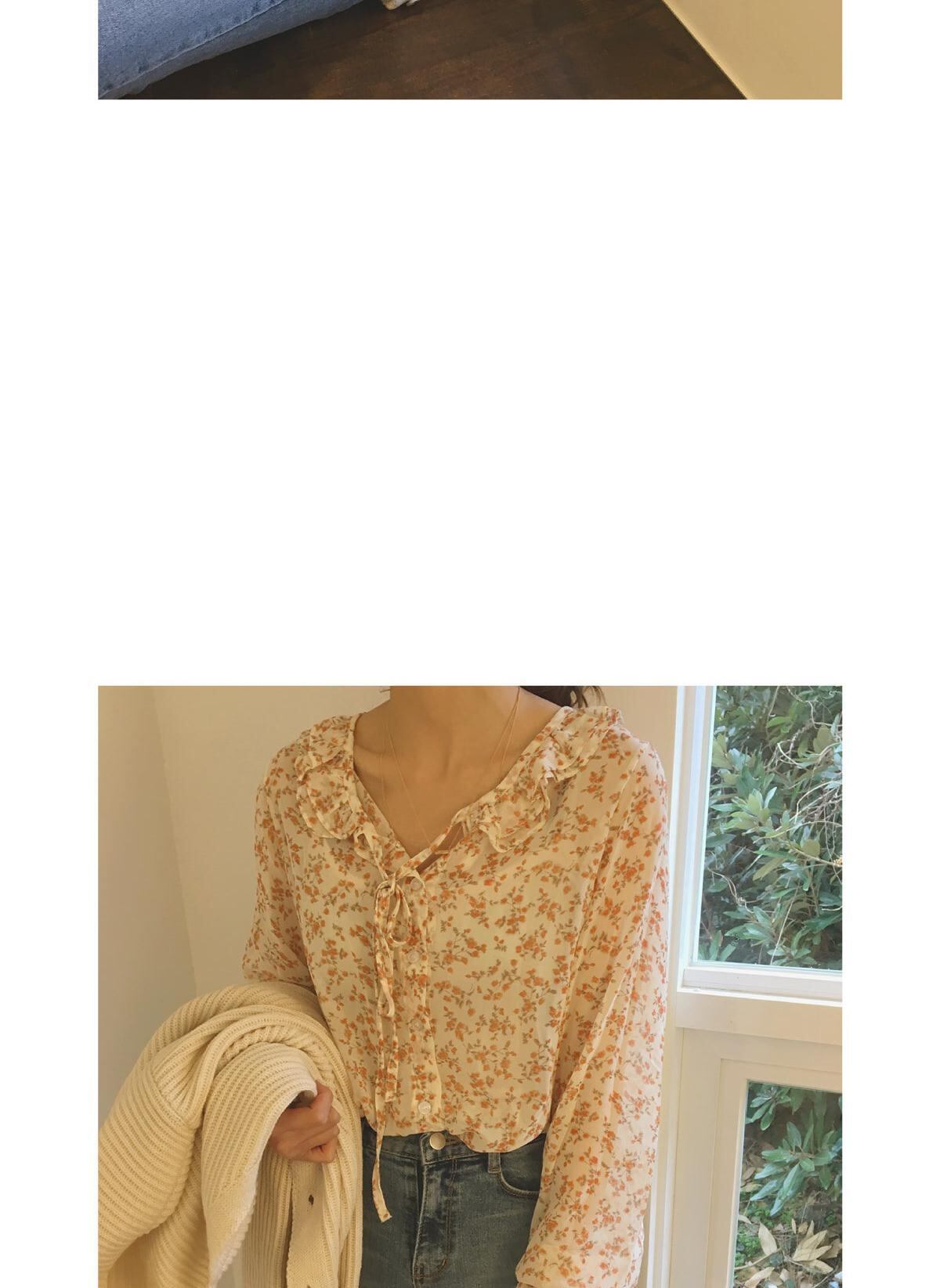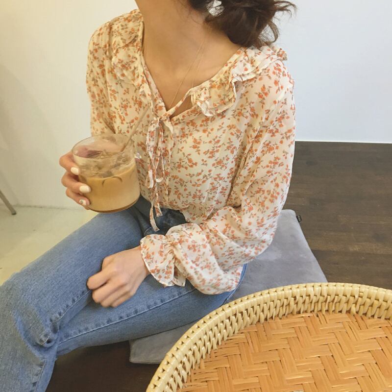2019南春新しい長袖レトロシックな香港スタイルのトップルーズルーズワイルドカビ花シフォンシャツ ロング スプリング 春物 花柄 左左右右_复古定制9897006
