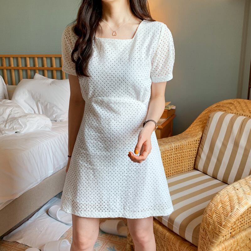 サマースタンダードスカート ロングカラーウェストAラインドレス レトロ 夏物 フラワーデザイン スクウェア 左左右右9861058