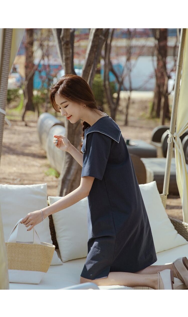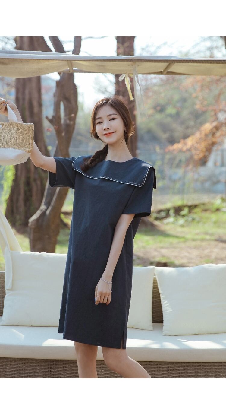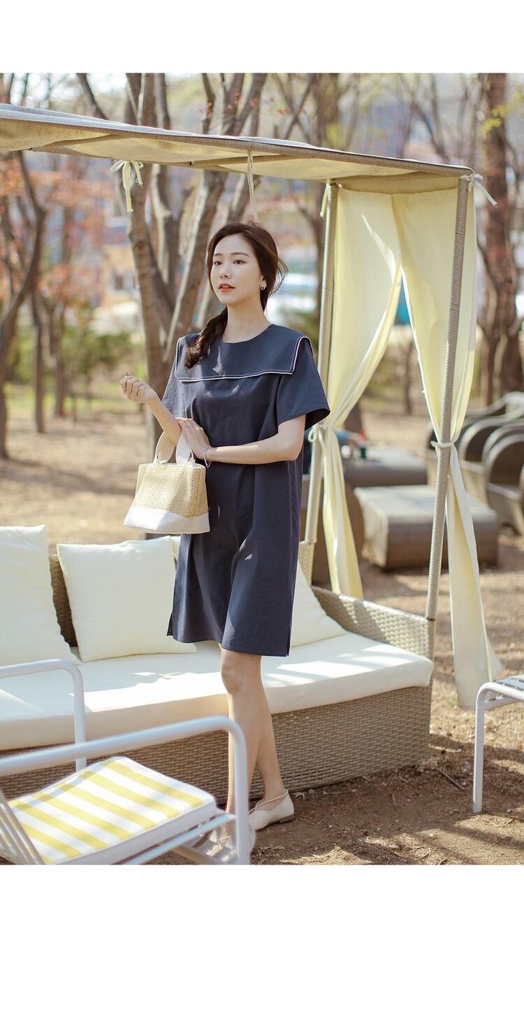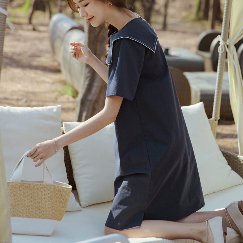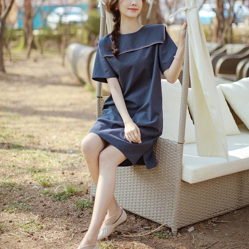 サマースカート ルーズネイビーカラードレス 大人ガーリー スウィート キュート カジュアル 夏物 フラワーデザイン 左左右右7598853
