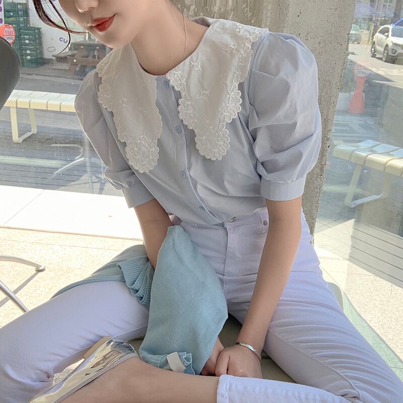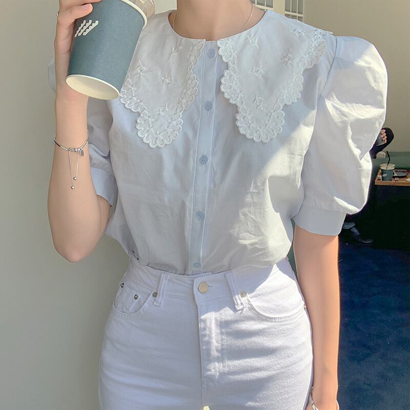 サマースタンダードスタイルジャケット レース刺繍シャツ レトロ 大人ガーリー スウィート キュート カジュアル 夏物 ステッチ 左左右右3886280
