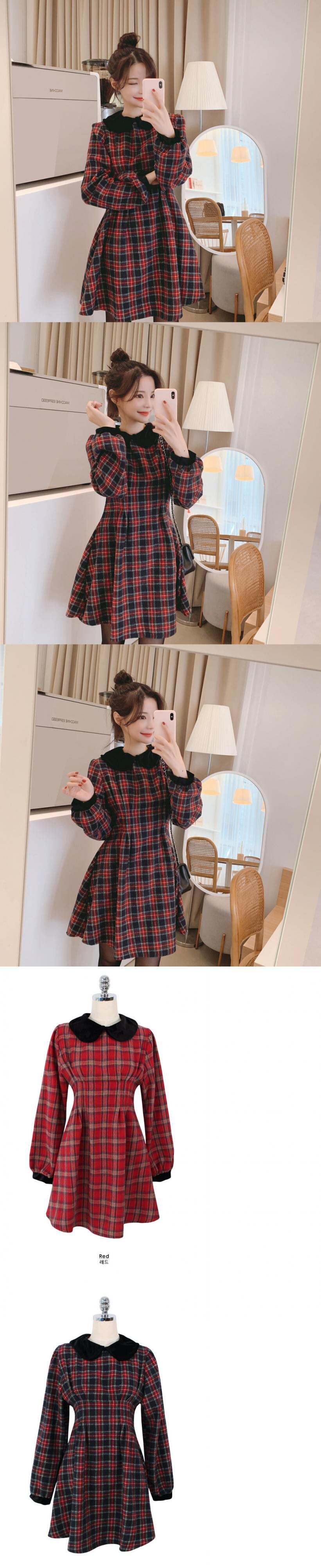 スタンダードスカート カラー格子柄薄手ドレス レトロ フラワーデザイン 左左右右1734972