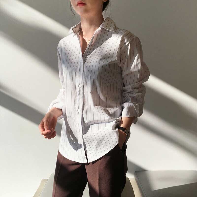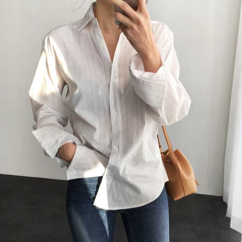 スプリングスタンダードストライプシャツ ホワイトスタイル レトロ 春物 左左右右1066327