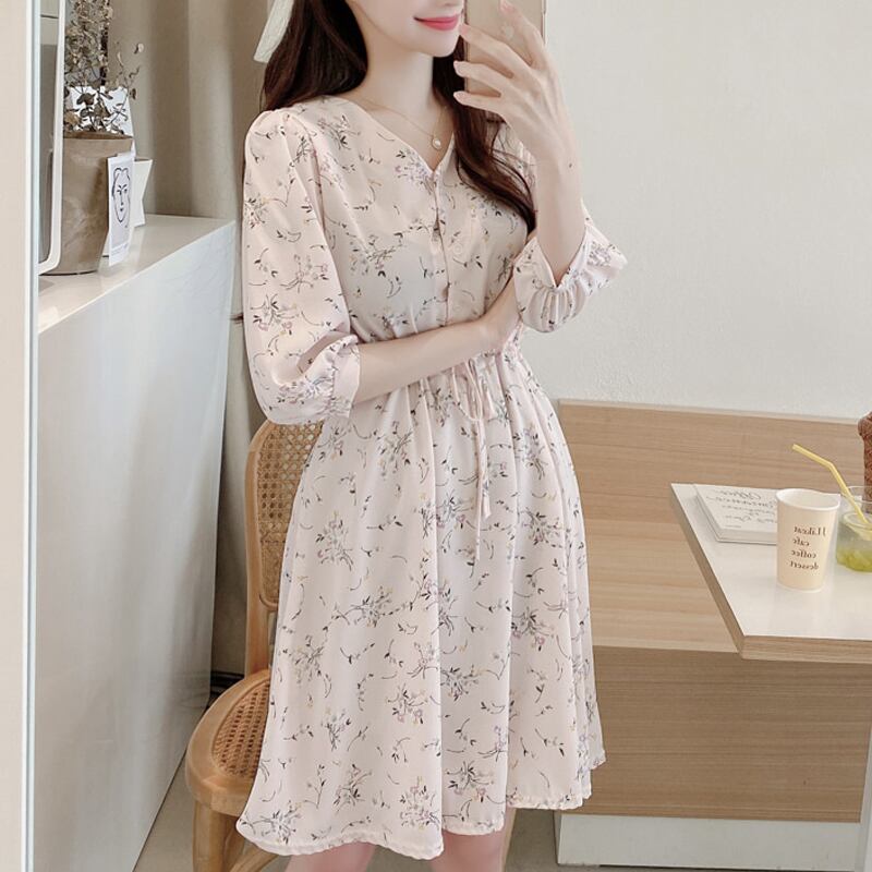 サマースカート ウェストスリム薄手フローラルドレス 大人ガーリー スウィート キュート カジュアル 夏物 花柄 左左右右7579081
