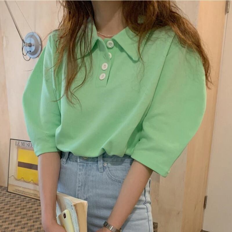 カラーブレストルーズソリッド カジュアルスリーブTシャツ レディース ソリッドカラー ICC_レディース1998762