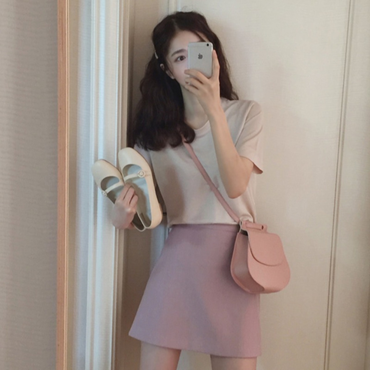 サマースタイルレッドカジュアルTシャツ ショートスカート 夏物 ICC_レディース0099588