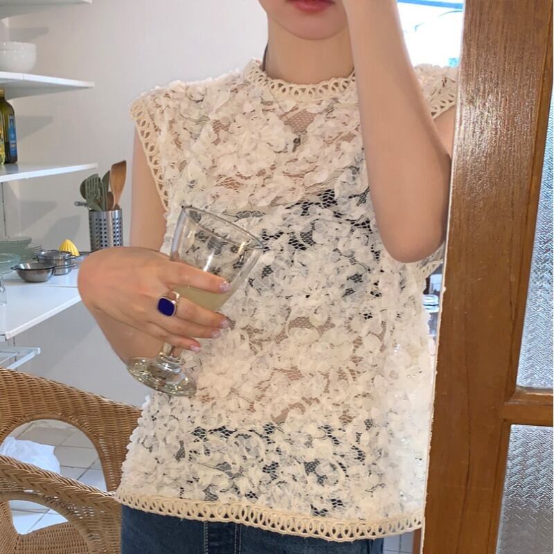 スタイルスタンダードカラーFlowerデザイン レースシャツ レトロ フラワーデザイン ICC_レディース5241866