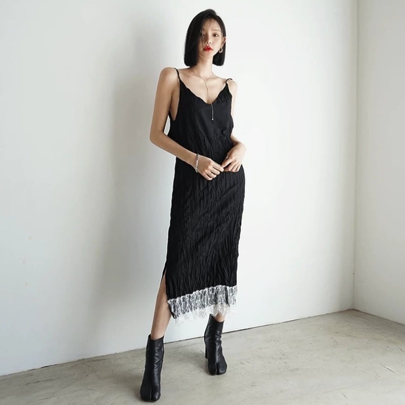 Vネックプリーツレースドレス ステッチ ICC_レディース8501788