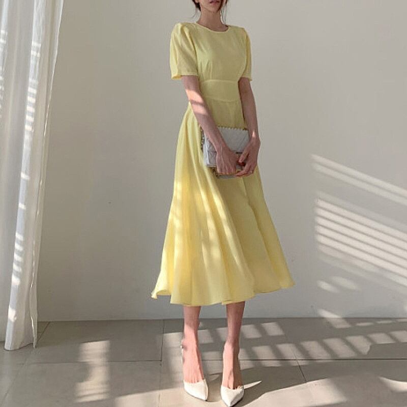 シフォンドレス サマースタンダードウェストスリムスカート レトロ 夏物 ICC_レディース5945229