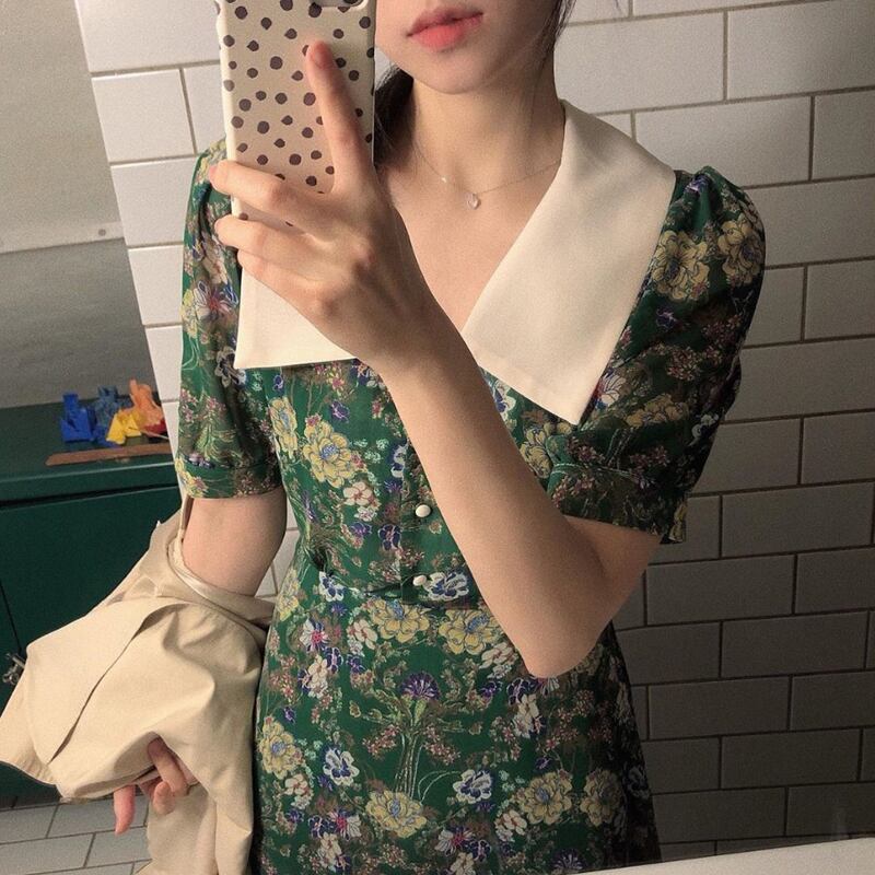 サマースタンダードスタイルスカート フローラルドレス レトロ 夏物 花柄 左左右右0109087