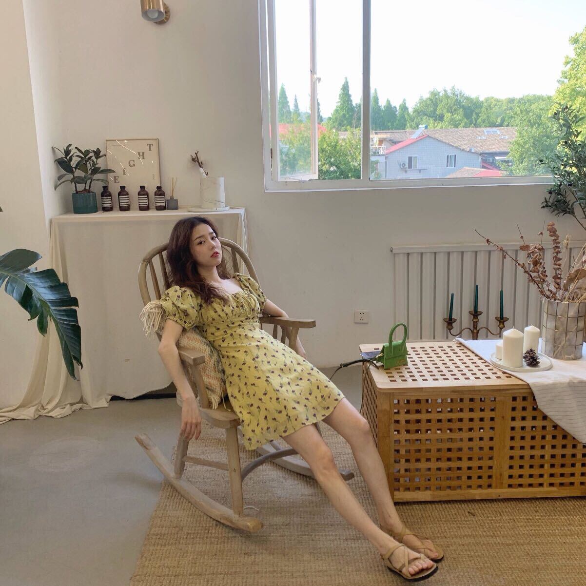 サマースタンダードスカート フローラルスリーブドレス レトロ 大人ガーリー スウィート キュート カジュアル 夏物 花柄 フラワーデザイン 左左右右3465370