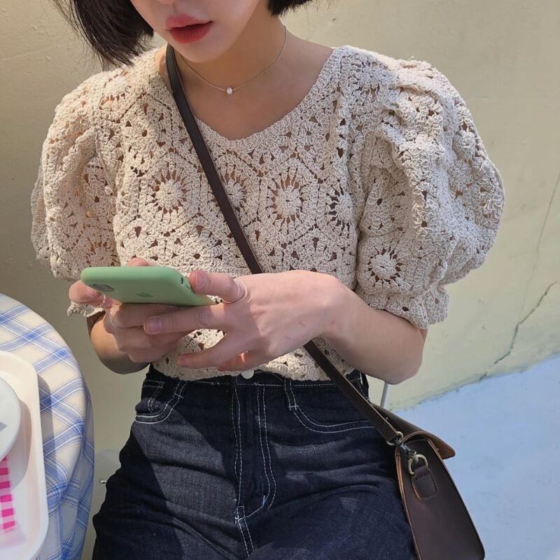Flowerデザイン レースシャツ スリーブサマートップス レッド 刺繍 夏物 フラワーデザイン ICC_レディース4612000