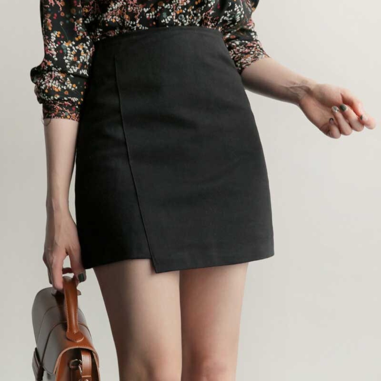 スタンダードショートスカート ブラックハイウェストウェストオータムウィンター レトロ 秋物 冬物 左左右右5942822