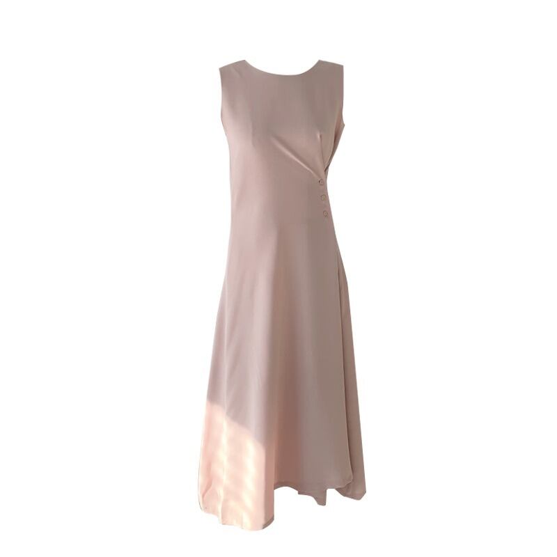 ラウンドネックバックルスリムウェストドレス エレガント Oネック ICC_レディース8549268