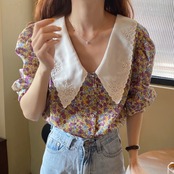 サマージャケット スタンダードフローラルシフォン刺繍シャツ カラー半袖スリーブ ショート レトロ ハーフスリーブ 夏物 花柄 ICC_レディース7981770