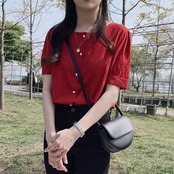 サマースタンダードシャツ ソリッド カラースタイル薄手 レトロ 夏物 ソリッドカラー スクウェア 左左右右6408162