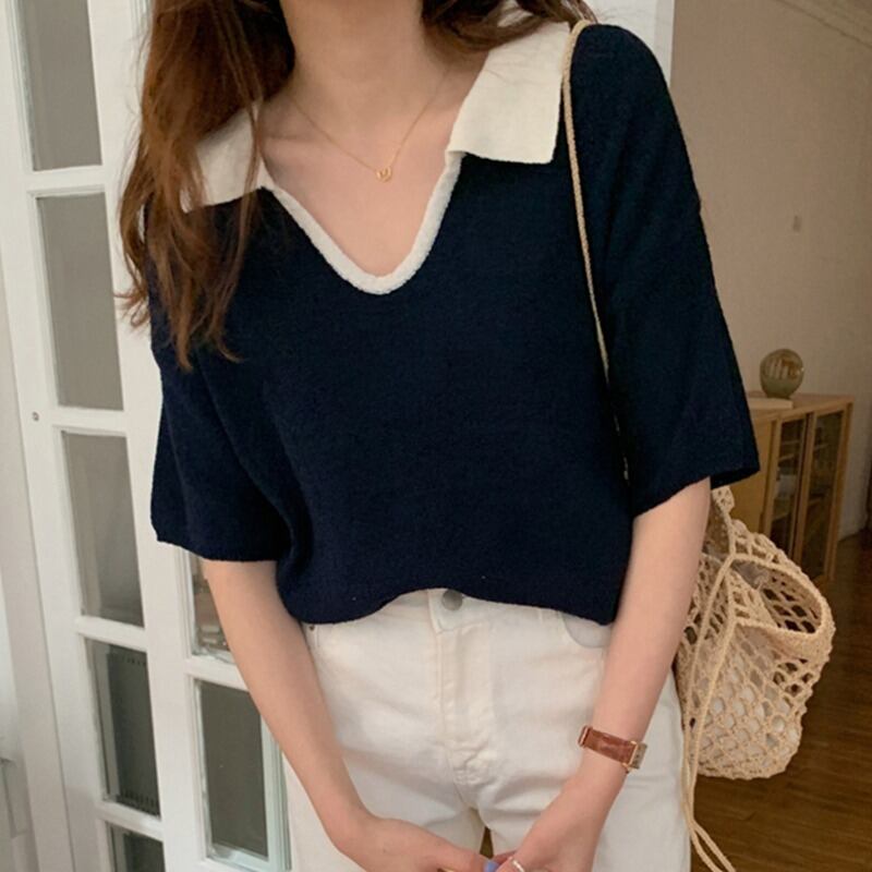 スタンダードカラールーズカジュアル薄手セーター シャツ レディース レトロ ICC_レディース8148171