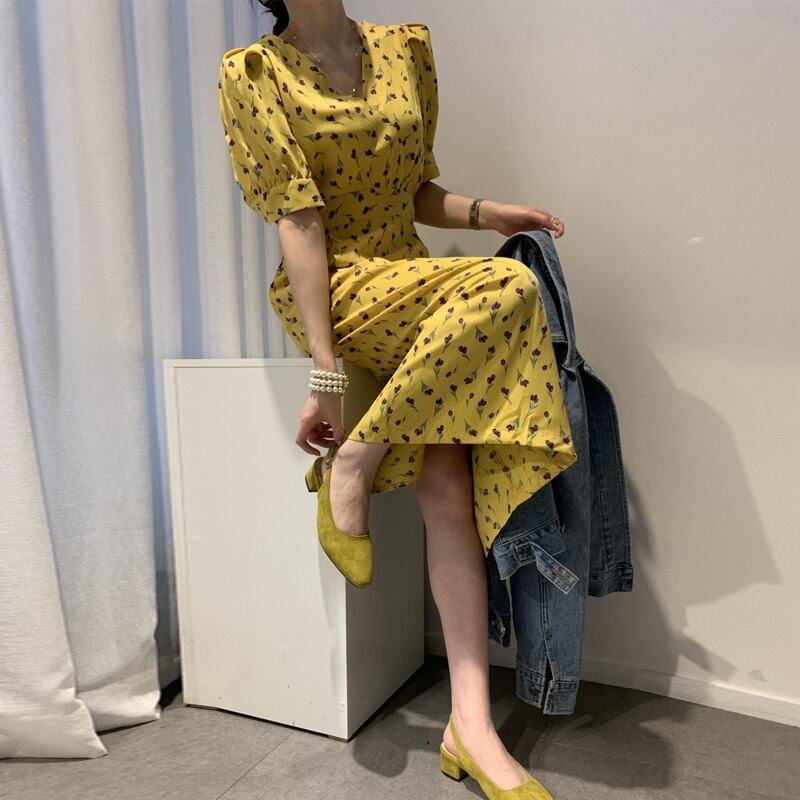 フローラル薄手Vネックウェストロングスリーブドレス レディース エレガント 花柄 ICC_レディース1805846
