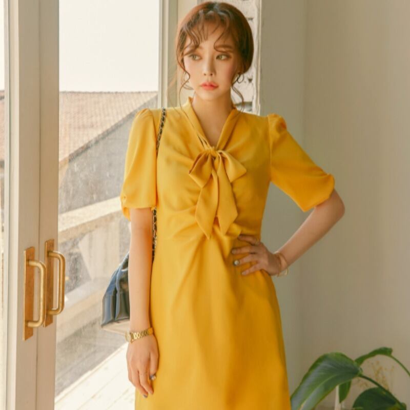 ドレス サマースタイルVネックリボンプリーツスカート 夏物 ICC_レディース7059785