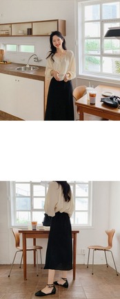ルーズシャツ ハイウェストウェストブラックシフォンスカート 左左右右9595995