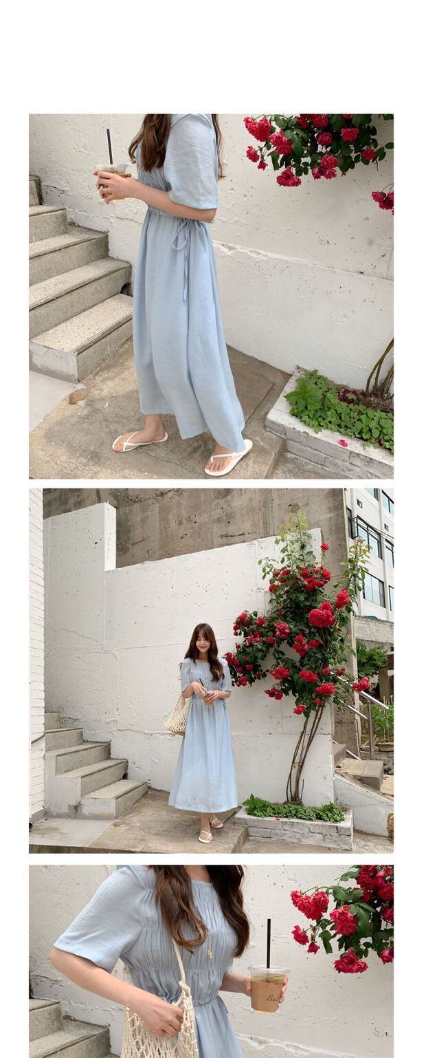 サマーブルースカート プリーツロングドレス 夏物 フラワーデザイン 左左右右7218005