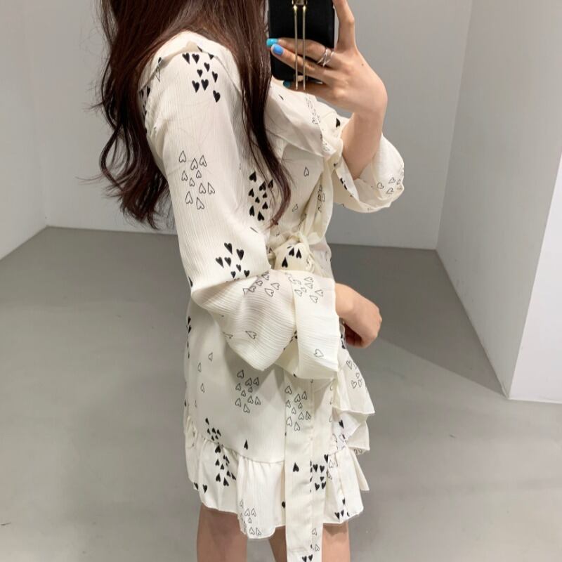 サマーカラーFlowerデザイン ショートスカート フードハイウェストウェストVネックドレス 夏物 フラワーデザイン ICC_レディース6428125