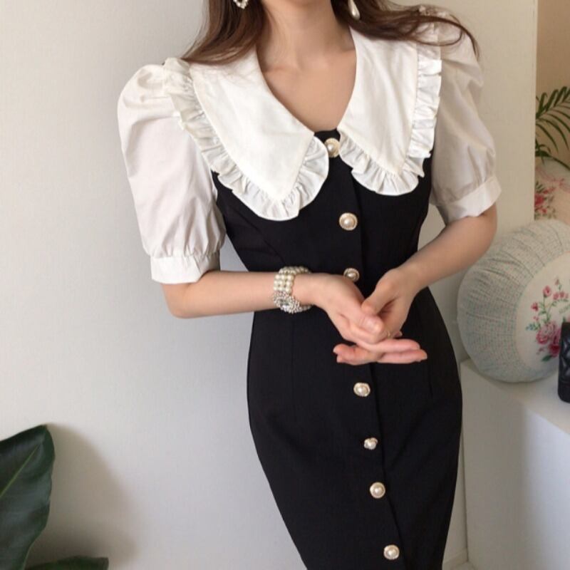 カラーボタンウェスト長袖スリーブドレス ロング ICC_レディース6485003