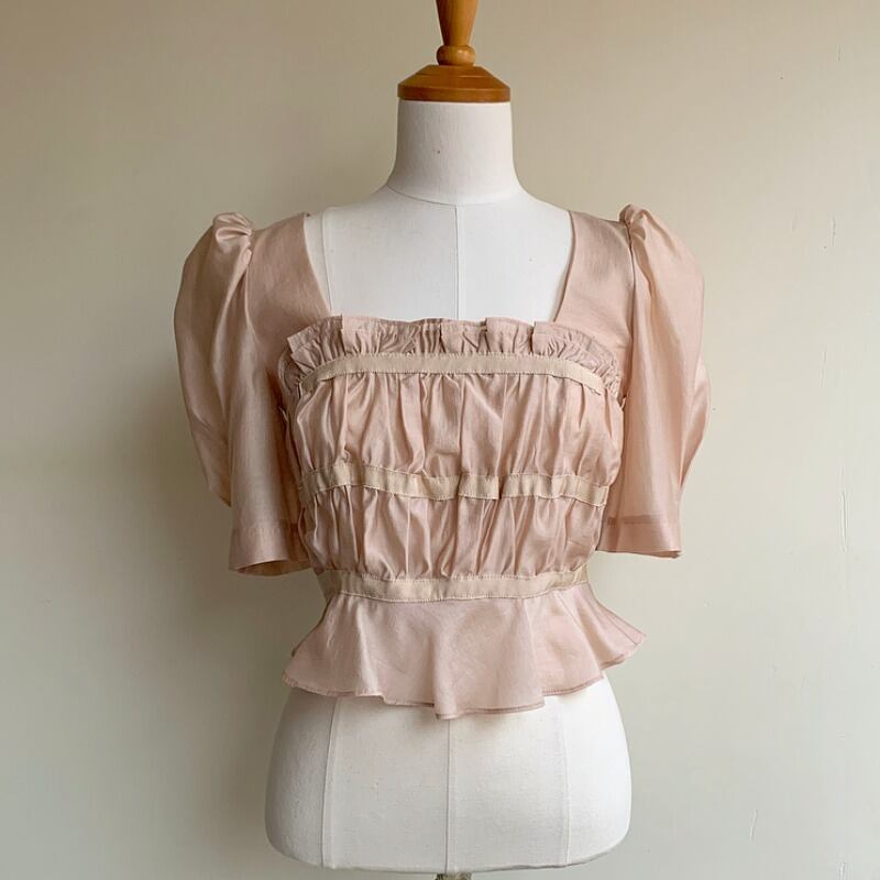 スタンダードスリムカラープリーツスリーブショートシャツ レディース レトロ スクウェア ICC_レディース9022436