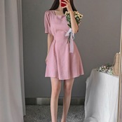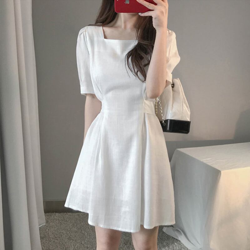 サマースタンダードドレス ウェストカラー薄手レース レトロ 夏物 スクウェア 左左右右5453542