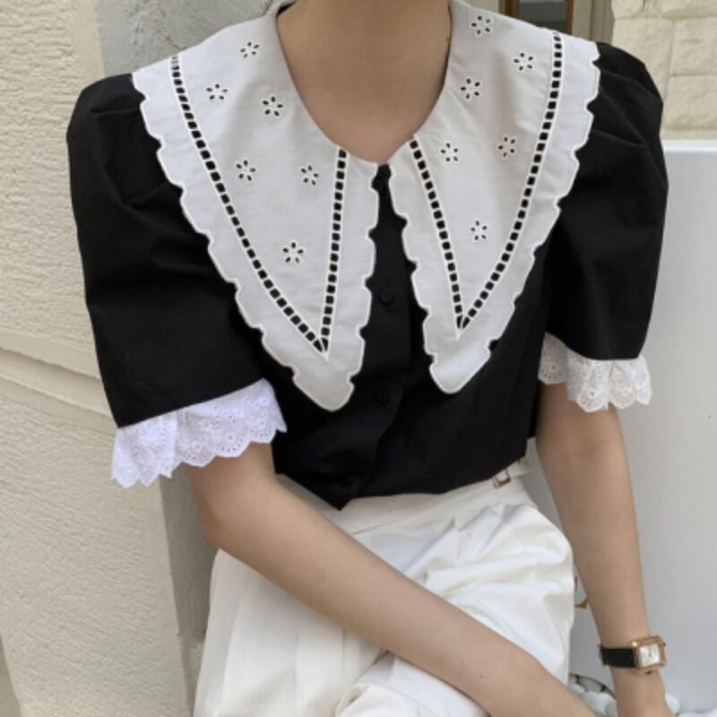 サマースタンダードカラーFlowerデザイン ルーズスリーブシャツ レディース レトロ 夏物 フラワーデザイン ICC_レディース8098892