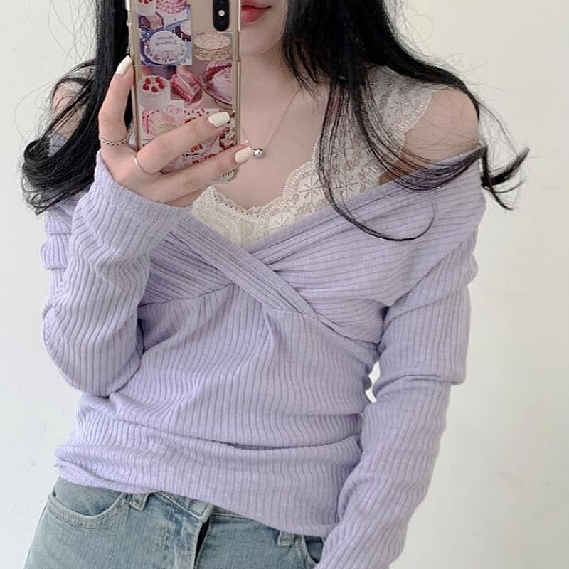 スタイルレースFlowerデザイン セーター Tシャツ ロング フラワーデザイン ステッチ ICC_レディース2870390