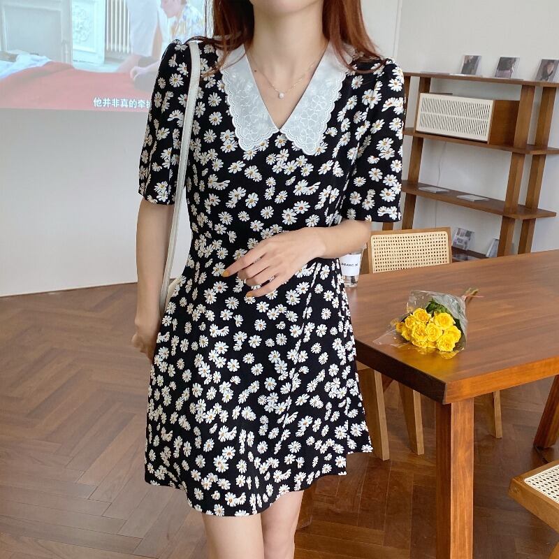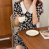 刺繍プリント柄ウェストAラインドレス スカート 大人ガーリー スウィート キュート カジュアル ICC_レディース3610623