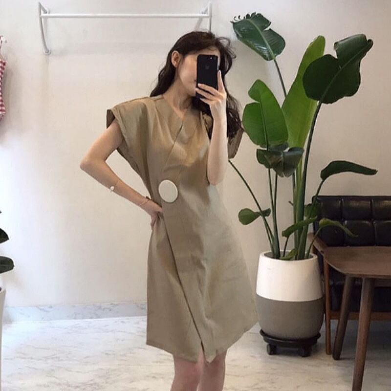 スタンダードサイドボタンVネック薄手ドレス レトロ ICC_レディース9616268