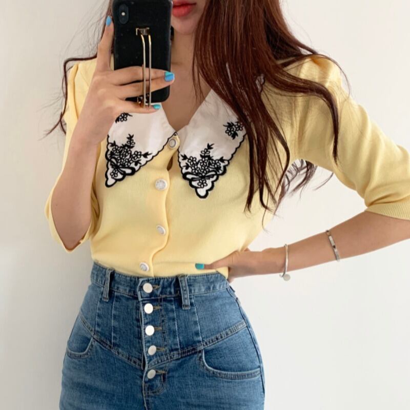 スタンダード刺繍スリムスリーブセーター レディース レトロ エレガント シルク ICC_レディース2977191