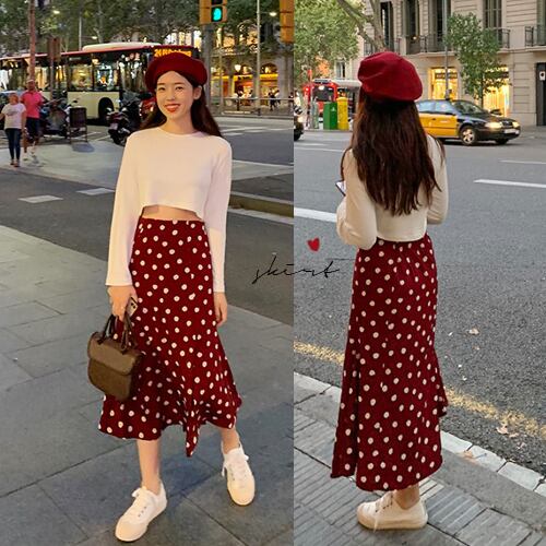 色:Tシャツ,黒のスカート弾性ウエスト,赤いスカートのウエストゴム