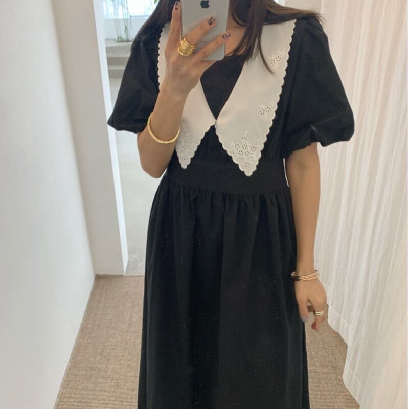 カラースリーブウェストドレス レッド ランタンスリーブ 刺繍 ICC_レディース3464246